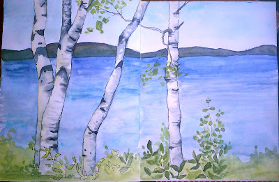 At the beginning of June, after the school year was finished, my husband and I went on a vacation with some dear friends to Madeline Island, Wisconsin. We stayed in a house on the northern side of the island that overlooked Lake Superior 98 steps up above the lake. This is the view from the screen porch as recorded in my sketchbook from our first morning. It was an amazing and relaxing few days and I do believe that Madeline Island is a place that we will return to again.